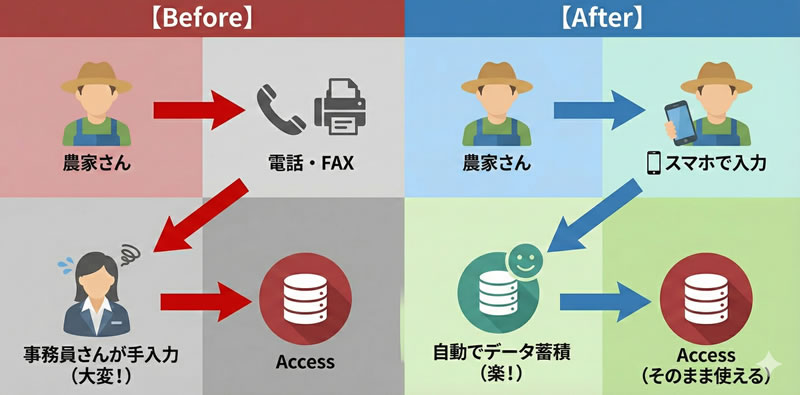 そこで私がご提案したのは、「入力だけを自動化して、Accessはそのまま使う」という方法です。
