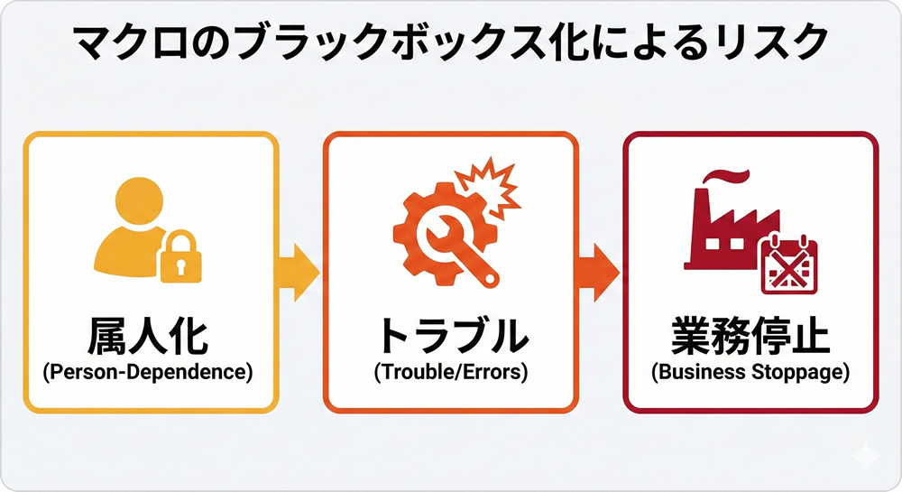 マクロが動かなくなると、そのマクロに依存していた業務がすべて止まります。