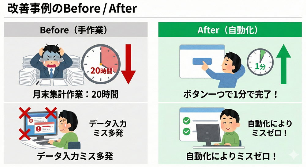 Before: 毎月10日かかっていた After: 2日で完了(80%削減)