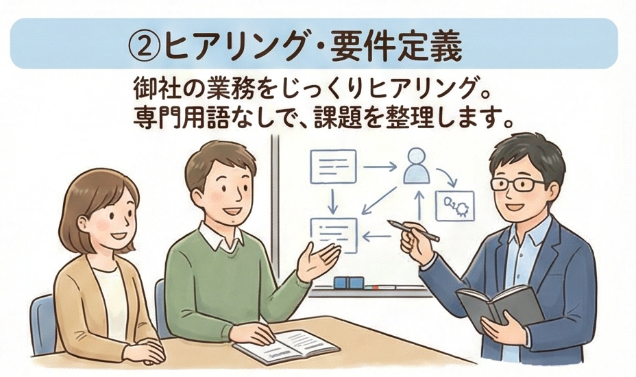Zoom等のオンラインミーティングにて、現状の課題やご要望をお伺いします。