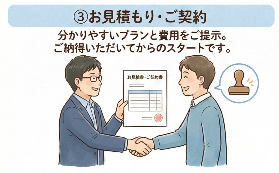 作業範囲・納期・費用を明確にし、納得いただいた上でご契約。
