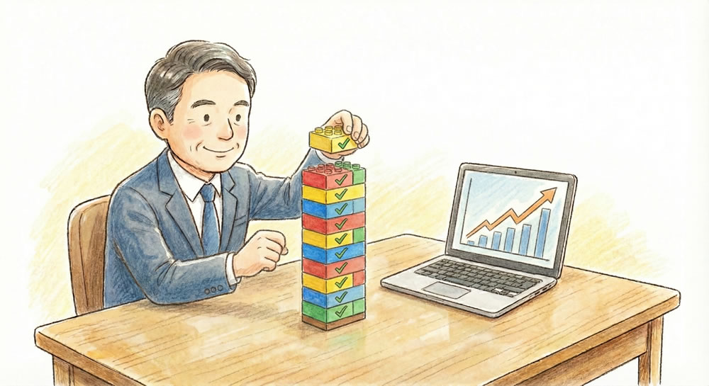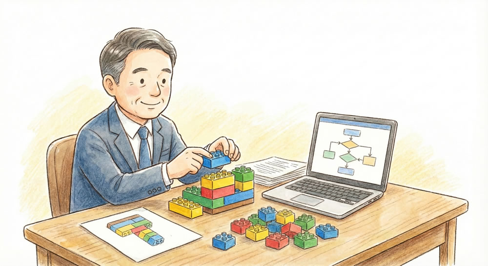 今お使いのパソコンや、使い慣れたExcel(エクセル)やGoogleスプレットシートという「小さなブロック」をどう組み合わせるか、そこから考えれば良いのです。
